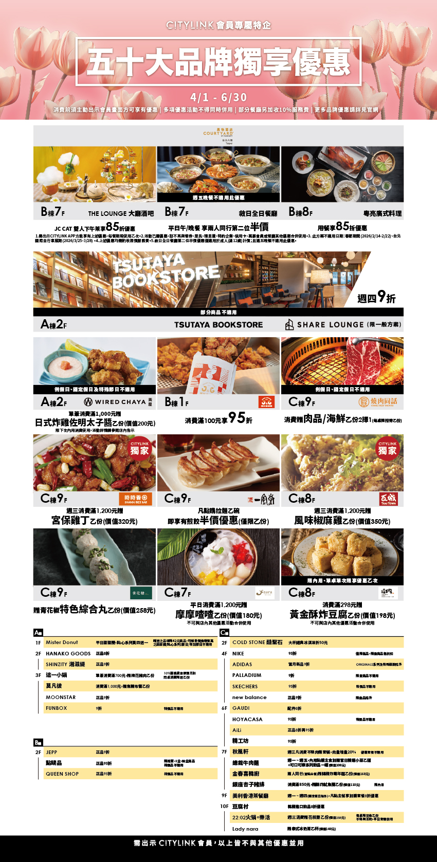 【會員專屬】4-6月 50大品牌餐飲購物優惠