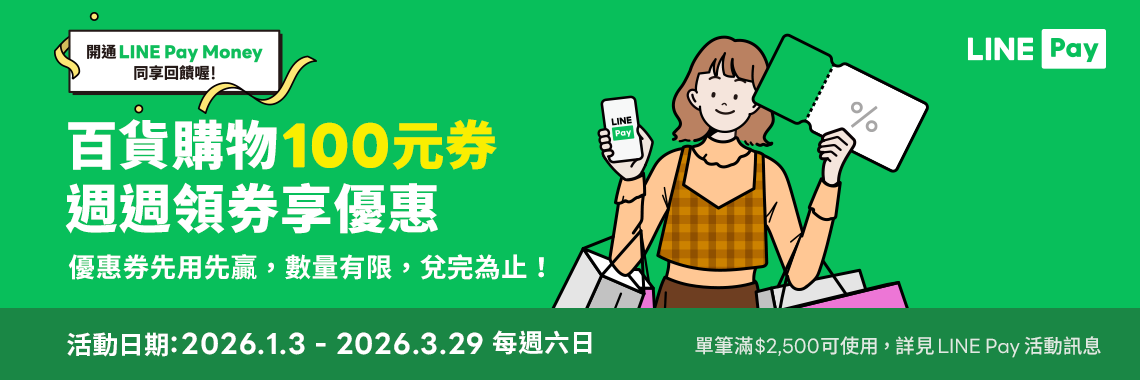 LINE Pay 週週領券超優惠|1/3-3/29 每週六日