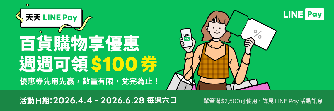 LINE Pay 週週領券超優惠|4/4-6/28 每週六日