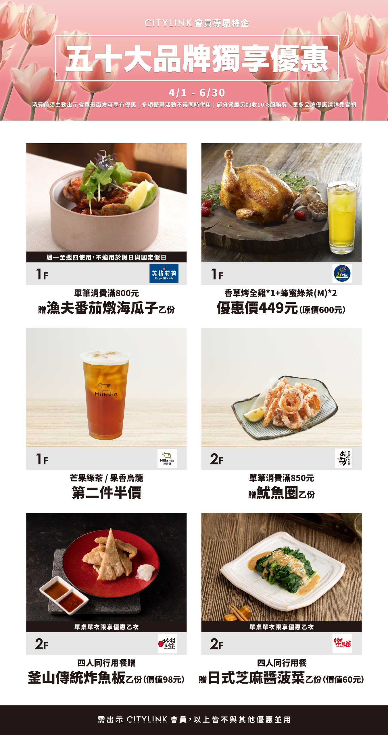 【會員專屬】01-03月 50大品牌餐飲購物優惠