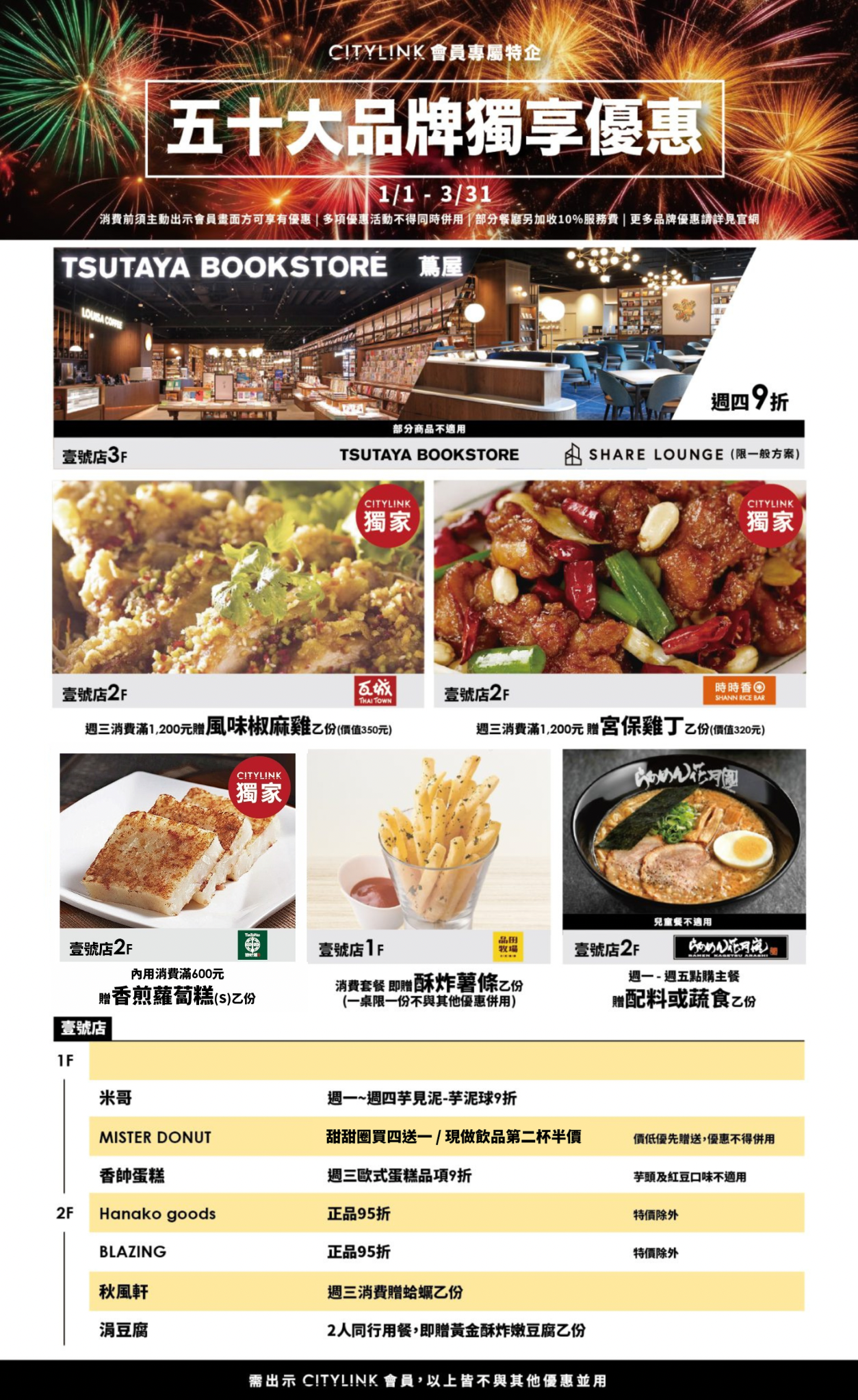 【會員專屬】01-03月 50大品牌餐飲購物優惠