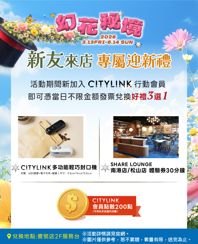查,離櫃後恕不接受瑕疵換貨。(4)商品圖片僅供參考,以現場實際為主。 (5)辦理退貨時如無法退還贈品,則需補足贈品金額;若為兌換會員點數者,CITYLINK將扣回該消費之贈送點數。(6)非開立CITYLINK發票之消費恕不參與贈獎活動。(7)本公司保有隨時調整活動辦法及優惠內容之權利,如有未盡事宜,依現場公告及服務人員說明為準。