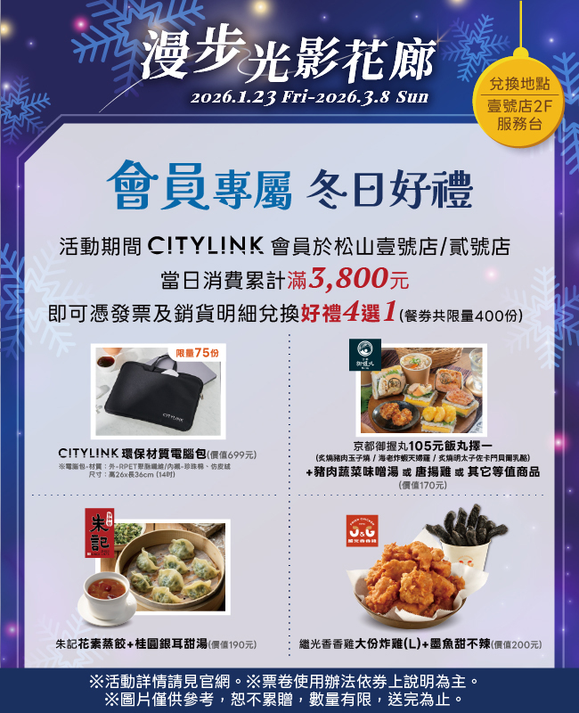 會員專屬 冬日好禮 | 1/23(五)-3/8(日)